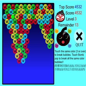 炸弹人(The Bomber)是Xnetcom64开发的一款休闲益智类游戏。 炸弹泡泡是一款非常经典的街机类游戏,游戏玩法类似于泡泡堂的游戏。游戏中有45个级别 10种敌人。炸泡泡,躲躲藏藏,是否能找到猥琐角落藏身,就看你自己了!!!! 当你炸开箱子的时候,或许会有意外的惊喜哦,可能会得到各种道具,能够帮助你增强炸弹的威力,游戏音效上非常的搞笑,画面上还算可以,喜欢这类游戏的玩家一定不要错过哦! 经典的街机游戏! 修复错误!游戏现可运行在大部分设备! 45个关卡,10种不一样的敌人。