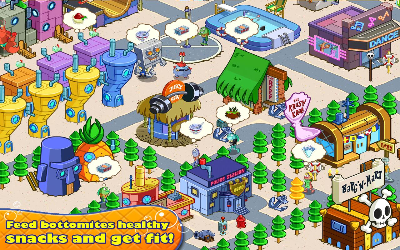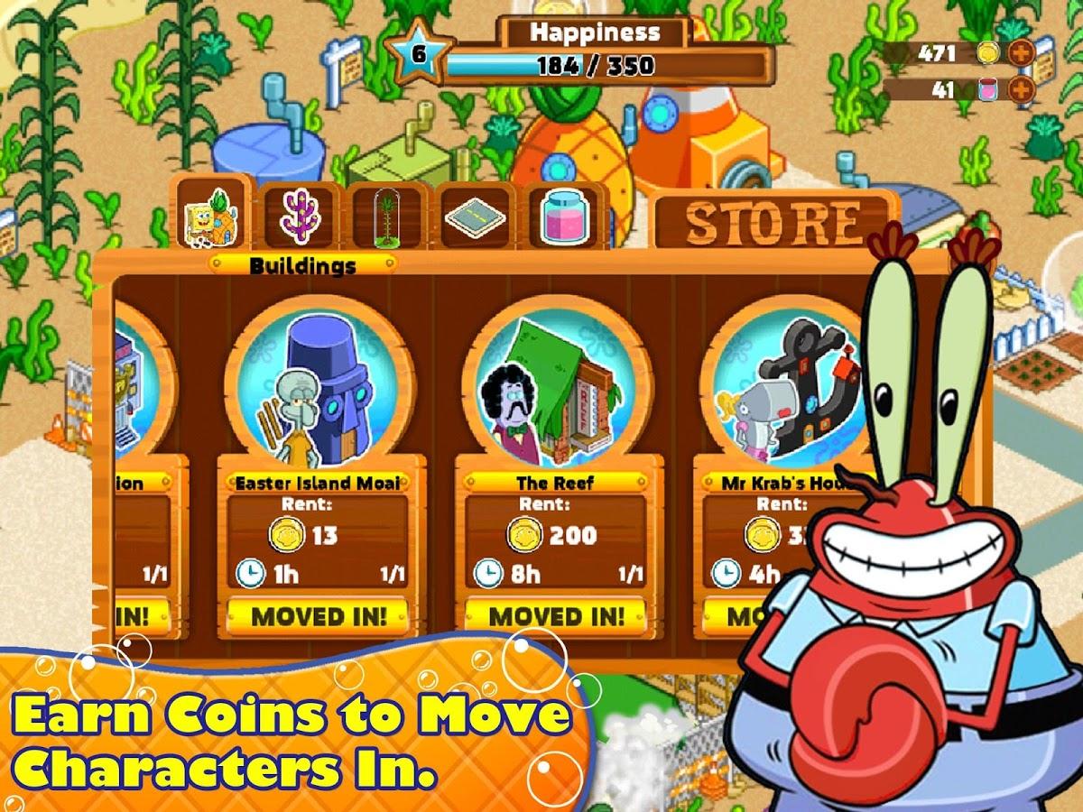 SpongeBob Moves In《进击的海绵宝宝》是一款以动画片《海绵宝宝》为背景的模拟养成游戏,由Nickelodeon电视台正版授权,游戏讲述的是海绵宝宝首次搬到了比奇堡,人生地不熟,你要帮助他认识镇上的每个朋友,还要帮他在蟹堡王找到工作。