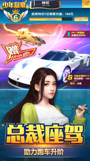 少年富豪是一款都市富豪养成经营手游,富豪云集的都市之中,将公司在商海上不断地提升,规模与资产进行翻倍的成长,第一视角真实体验企业家感受的模拟经营游戏,体验不一样的人生。美女秘书,解锁共享今宵!活动多多,决战资本大亨!