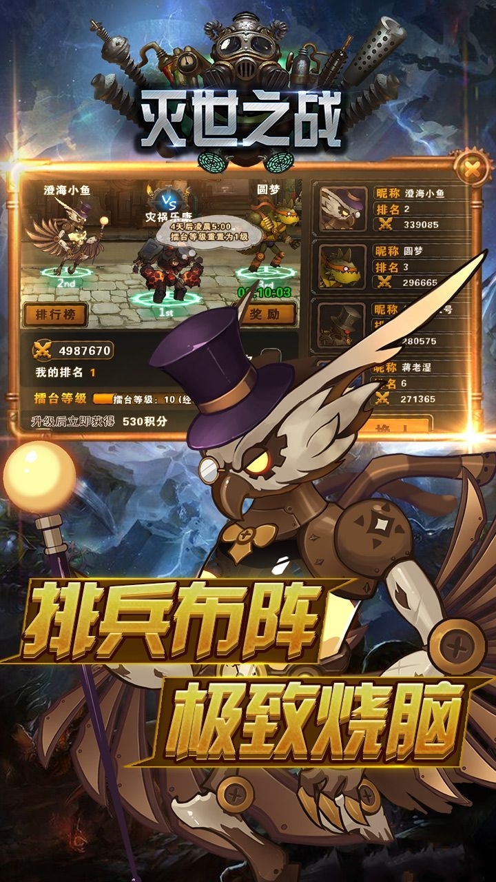 灭世之战是一款放置休闲类的卡牌挂机手机游戏,采用暗黑系游戏风格营造紧张刺激的游戏氛围。同时还融入了爆笑的剧情和搞笑的对话,丰富的游戏场景搭配不同属性的角色让你可以体验不一样的游戏乐趣!海量精彩的卡牌英雄任你收集,自由组合搭配,组建你的英雄军队,强者PK跨服激战,一切尽在天命。