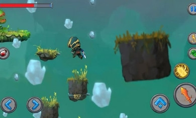 2、采用虚拟按钮控制,有前、后、攻击、技能、跳>跃、药水按键;