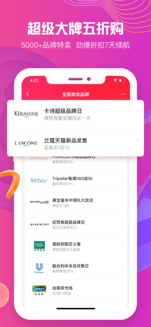 3、专属特卖,同步聚划算、淘抢购的精选活动,最高80%返利货优惠券,独此一家