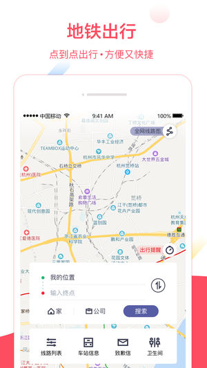 随时查看附近地铁站、出入口、卫生间及地铁延误资讯