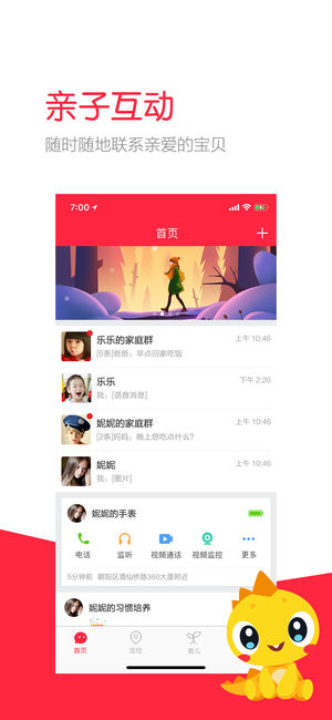 【亲子互动】:通过高清通话、语音、表情等方式,让亲子沟通更有趣。