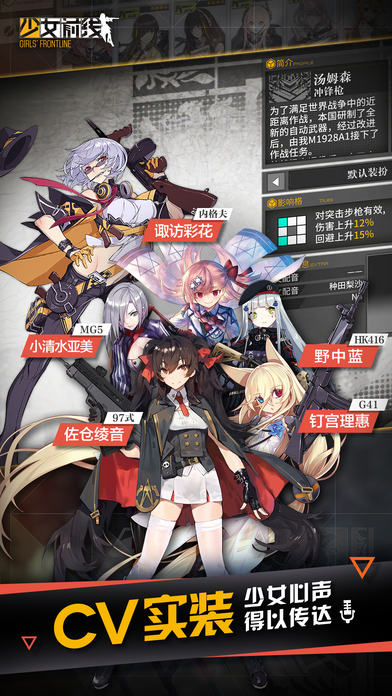 少女前线是一款画风非常萌萌哒的枪战类手游,少女前线将现实中大量的枪械进行娘化,选择以枪械为主题加上战斗与养成玩法,不废纸的打枪哦!军事宅,枪械迷的不二之眩枪在手 跟妹走,这就是战术养成游戏少女前线,当然对各位宅男玩家来说也是相当的诱人的,而且立绘也是非常精彩,一起来看吧。各位玩家可以下载体验。