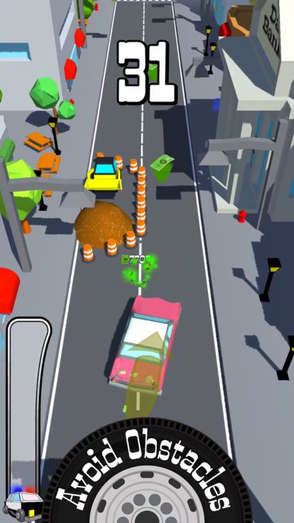 是一款有趣的逃脱类型的游戏,玩家将在游戏中驾驶着你的汽车拼命的逃跑,后面有警车的追赶,每次抢劫后都要开始拼命的逃亡,更惊险更刺激,还有各种道路施工的路段都是要避让开的,被追赶上了就麻烦啦!