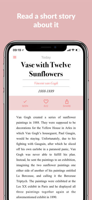 在DailyArt手机版上每天你会看到一件精美的艺术品,与大师一起探讨,提升艺术品味。