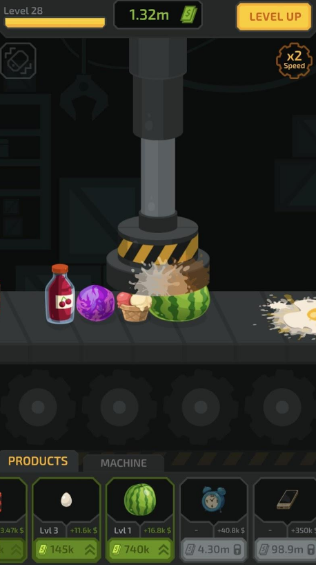 液压机公司游戏画风精致细腻,玩法休闲简单,适合用来打发无聊的时间,玩家在游戏中控制液压机压榨各种水果,将它们统统碾碎,榨出新鲜的果汁,充分发泄心中的情绪,适合上班族的解压,喜欢的玩家赶紧下载吧!