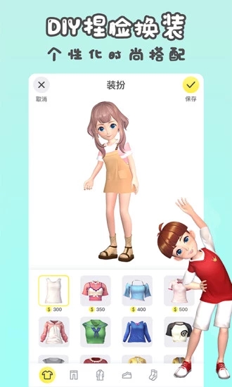 你可以装扮自己的人物,穿上喜欢的衣服,搭配帽子鞋子袜子等各种配饰,每天换个不同心情的发型发色。还可以装扮自己的空间,就像你的小房间一样。设计小姐姐创作了大量的素材资源,只希望有你喜欢的。