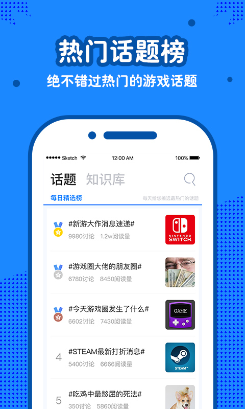 (4)热门游戏话题榜单,传播游戏圈的新鲜事儿。