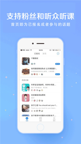 【发现】覆盖22个类目10万讲师,每天早晚定时更新直播话题,每个类目下都有10000的精华内容