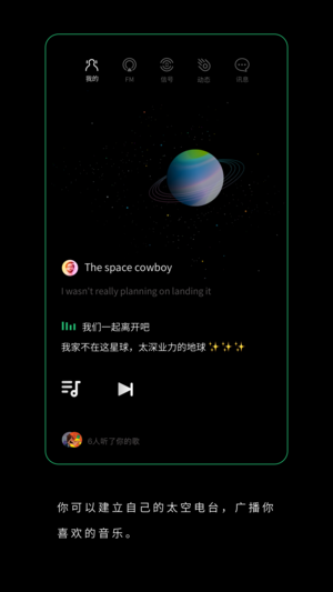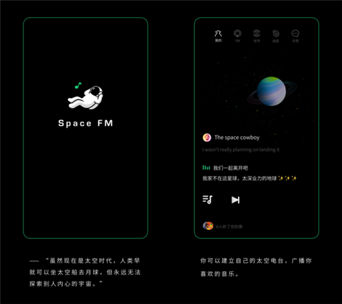 我们想,当你置身于太空中,广播音乐和发送信号或许就是确认同类的方式的吧。于是就做了Space FM。