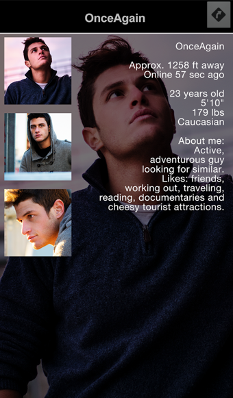 享受在您所在地区和世界各地的超过500万男同志聊天!特点:- 推送通知支持- 匹配搜索- 3张公开照片 + 2张私人照片- 列表视图和图库视图的展现方式- 个人资料的过滤- 情景模式的选择- 收藏列表和关注列表- 无限制的交流服务条款:- 不要上传任何全裸或非法的照片。- 每个账户只支持在一个设备上使用。- 您必须是年满18岁或以上才可以注册。注意:- 超过3个月不登录的账户可能会被删除。- 超过3个月的信息可能会被删除。