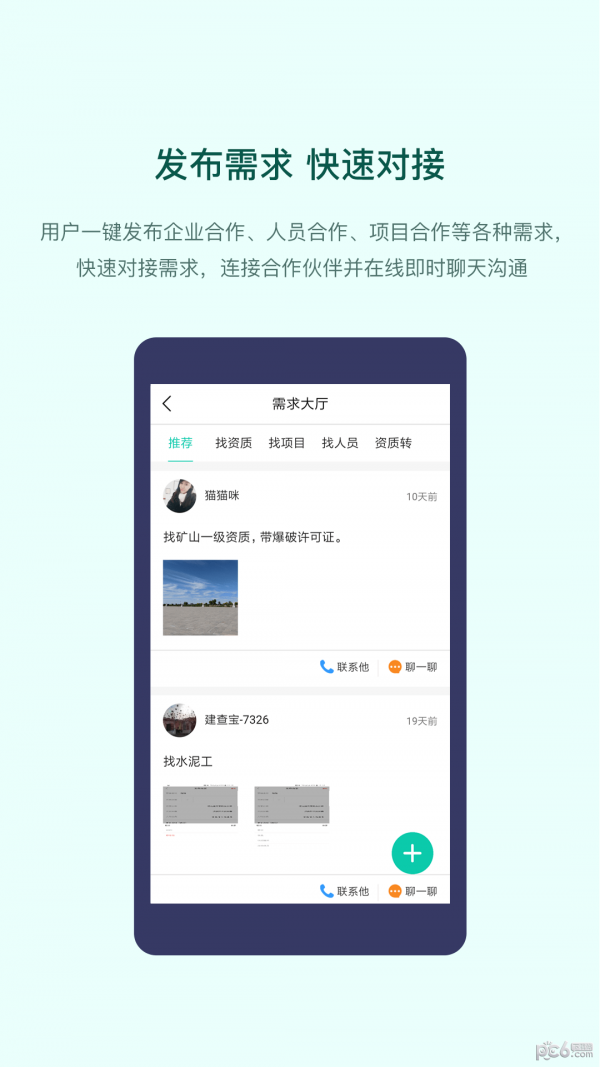 用户自主发布企业合作、人员合作、项目合作等各种需求,快速对接上合作伙伴