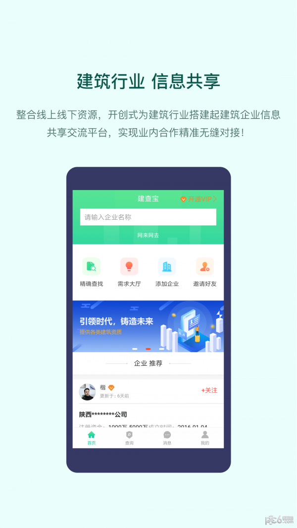 app是一款建筑行业的信息交流软件,app通过整合线上线下资源,开创式地为建筑行业搭建起建筑企业信息共享交流