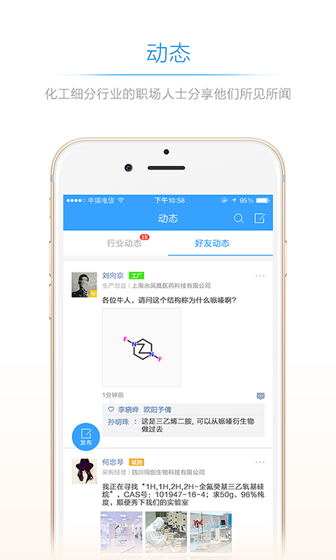 化工圈是一个以撮合化工B2B交易为导向的化工行业从业人员实名制社交软件。借力社交网络的信息传播方式,帮助数千万化工行业从业人员通过手机拓展人脉,寻找商机,达成交易。