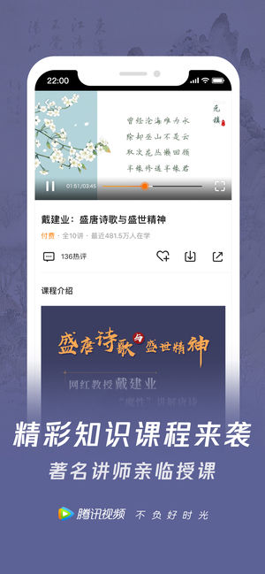 腾讯视频,定位于中国最大在线视频媒体平台,同时也是一款视频播放器。其以丰富的内容、极致的观看体验、便捷的登录方式、24小时多平台无缝应用体验以及快捷分享的产品特性,满足用户在线观看视频的需求。