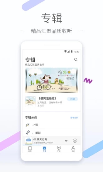 8、我的订阅:不必再为错过电台直播节目烦恼,新一期节目的回听内容上线时,系统会第一时间提醒,让你随时掌握已订阅专辑的更新动态。