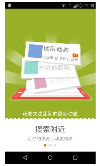 搜索附近:搜索附近的团队,进行交流或者挑战,让体育生活更精彩组团运动:创建自己的个性团队,让你和你的朋友更亲近好友动态:查看各类好友的最佳动态,并进行评论和点赞等互动