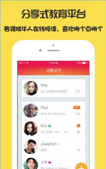 是一款集学习与社交于一体的软件。你可以在上选择要学的课程和对应的名师来帮你在线上课,还可以上传学习资料、课程成为老师来赚钱!