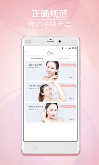 让你不受场地、时间的困扰,随时随地可以护肤—根据自身皮肤状况,来量身定制属于自己的护肤计划—专业的护肤私教来指导你的动作,标准的动作演示和标准的语音描述,让你的每一步的护肤动作都规范到位