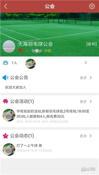 1.2.在公会管理项可以发起羽毛球活动,预定羽毛器场地;公会其他成员可以参与公会发起的羽毛球活动,并直接支付报名费。
