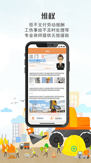 app是一款针对在外务工人员了解家乡信息及找老乡共同建立属于自已的工友圈,app提供在工作中遇到的法律问题帮助工友进行在线维权资询。