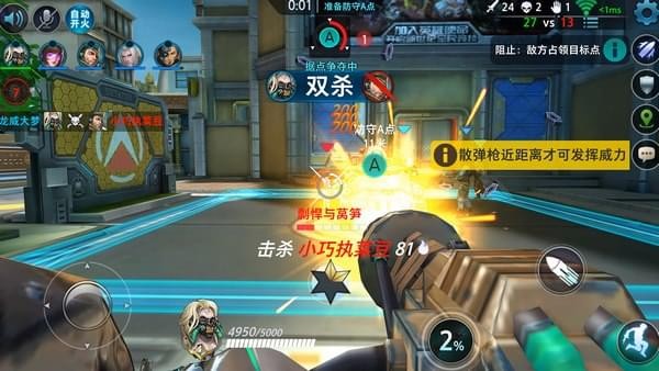 4、游戏使用最贴心的操作模式和辅助瞄准,让射击感无比强大,同时加强了动作Moba的电竞刺激感,整体手感还原经典射击游戏,让你不仅感受到经典射击游戏的魅力,同时体验到次时代电竞手游的触感。