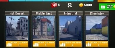 4个地图:沙漠,中东,工业区,化工厂;不断的战斗才能熟悉周围的环境,废弃的汽车下面也可能有敌人;这些地区都十分的不稳定,随时可能爆发冲突,你的敌人们就影藏在这些地区,快带上你的加特林机枪,把敌人们全部歼灭;