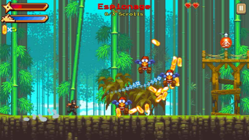 在像素化的植物间迅速穿越,迅捷地消灭邪恶的敌人,跳跃到空中用手里剑击杀对手!