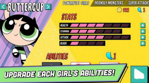 升级飞天小女警的超能力,使她们更快、更强、更厉害,能够来对抗更加多的怪兽们来战斗。