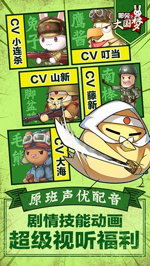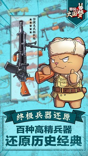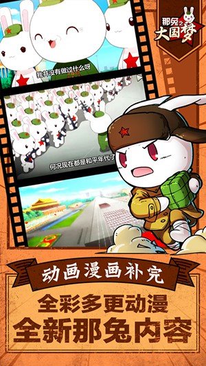 《那兔之大国梦》是一款动漫战斗跟卡牌相结合的手游。在游戏中,各具特色的动物任性收集,帅气狡猾的鹰酱,憨厚酗酒的毛熊,根据自己的喜好,收集特定动物,组建只专属于你的战队。萌娘机甲跟玩家一起战斗,给您带来身临其境的战斗氛围。这一次,我们带您重回那个战火纷飞的时代,带领你的部队为种花家崛起而战吧!