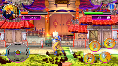 超级赛亚人之战2是一款动作格斗类型的手游,我们八零九零后小时候都在游戏机上红白机上玩过拳皇吧,这款手游就和拳皇的玩法一模一样,只是带入了七龙珠的角色进去。
