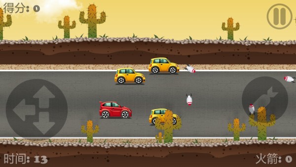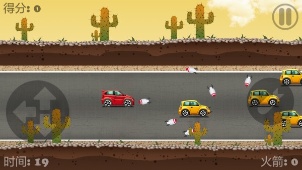 一款简单有趣的公路赛车游戏,不同之处在于可以边驾驶汽车边收集公路上的炸弹,并可使用炸弹击毁前方阻挡的车辆。每击毁一辆汽车得10分,看你能击毁多少辆呢。