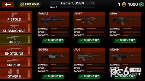 4、25武器:枪支,手枪,狙击手,自动步枪,霰弹枪,手榴弹;