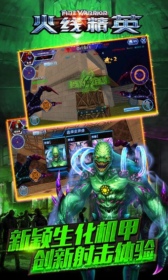 幻风格,让玩家可以变身为战力爆表的酷炫机甲,让你的敌人闻风丧胆!另外还有千种枪械、百张地图任你挑选,尽情发挥你的战斗狂热。还在等什么?马上加入《火线精英》手机版,开始你的火线争霸之路吧!