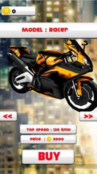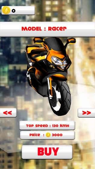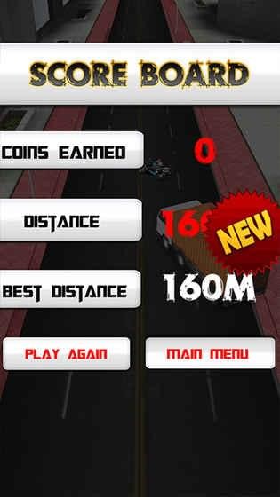 游戏操作很简单,通过手机的左右摇摆来控制摩托车的左右前进,躲过各种公路上的其他车辆,你需要眼疾手快才能获得更多的分数。你还可以不断的收集公路上的金币,来购买更高级的道具。