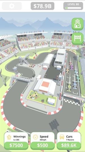 这是一款非常轻松的放置类经营游戏,你只需要购买赛车在跑道上每跑一圈都能给你带来利润。