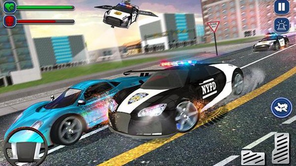 游戏是一款结合了汽车驾驶跟飞行的模拟器手游,游戏中赛车手是来摧毁城市的安全与和平的,你将是驾驶着警车的警察,目的就是为了将这些赛车手绳之以法,赶紧来下载游戏体验吧!