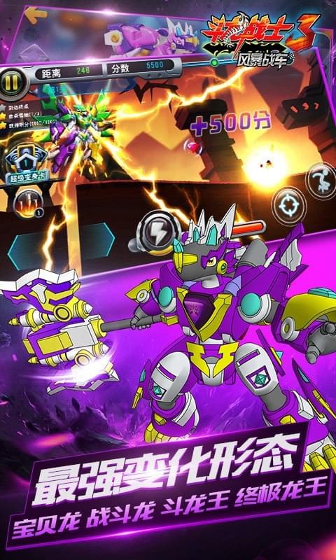 斗龙战士3风暴战车手游是一款赛车类的游戏,在斗龙战士3风暴战车手游中,玩家将驾驶着炫酷的赛车进行跑酷,同时赛车还能进行射击、机甲变身等玩法,不但音乐紧张刺激,玩法同样也是,喜欢的朋友赶紧下载试试看吧!