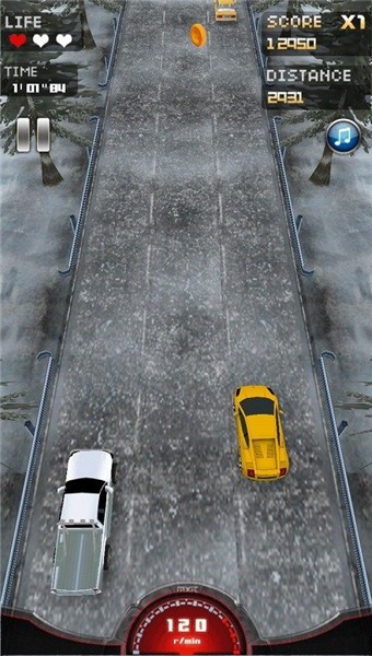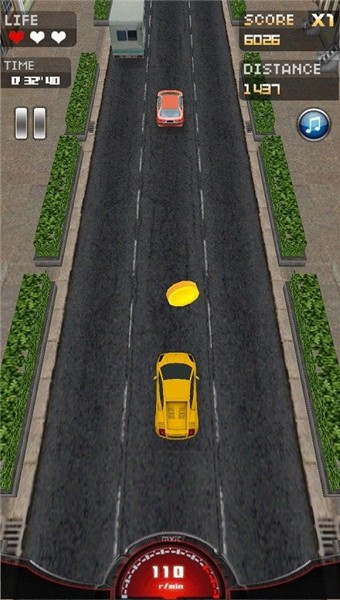 左右摇摆设备,控制你的赛车的转向,躲过路上的NPC车辆。在行始过程中,你可以收集完美,这可以让你在选车界面购买新的车辆,当然,你的等级也需要到达完美这个新车的等级。点击屏幕,你的赛车就会加速行始,增加游戏的刺激性。游戏设定在行始过一段路后,会提高你的车速。慢慢挑战你的反应力吧!