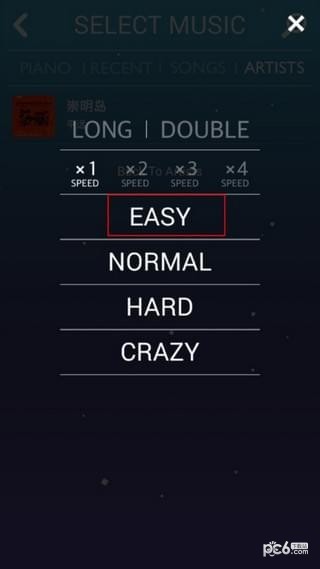 如图一选择一个游戏的困难程度,选择后,即可使用这首下载的本地音乐作为游戏了。玩法极为简单,只需要点击上方落下的方块,在其不要超过横线之前点击消除即可。离横线越高消除方块得分越高,谁的分数高,谁就是赢家。