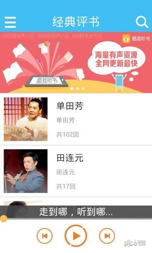 1、单田芳、袁阔成、刘兰芳、田连元…网罗众多名家之经典巨著;薛家将、呼家将、杨家将、三侠五义…收集史上很多很全评书作品。app每天都有海量内容持续更新,听到极致!