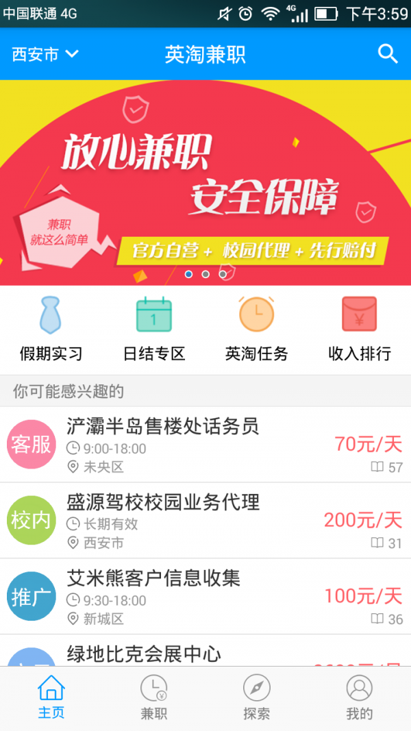 英淘兼职app是专为大学生兼职打造的应用,能随时查看各种优质的兼职项目,所有招聘信息都经过严格的实体考察,更拥有旅游打工服务,是您寻找兼职的好帮手。