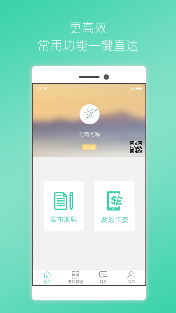 e兼职企业版是个让企业舒心,学生放心的招聘软件,给你最靠谱的招聘体验!