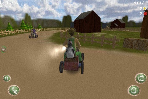 《疯狂割草机2》是一款很不一样[赛车游戏],游戏移植自IOS平台,游戏主要特点是,在农场飞奔竞速,使用扔西红柿和鸡蛋阻扰对手,成为这农场唯一的主宰。 游戏中,你要驾驶的不是越野车也不是赛车,而是:割草机!!你的任务就是驾驶这辆破割草机,并且不断将其改善、修复、升级,与其他农夫进行[赛车]!游戏中,你要不断撞击对手,还要在对手前进的道路上放些西红柿,鸡蛋等来阻挠它们前进!