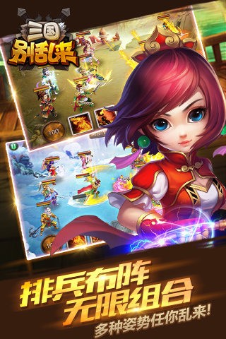 2015年首款半动作回合卡牌手游《三国别乱来》烽火来袭!紫薇帝星穿越三国,拳打刘备脚踢孙权横扫曹操,皇帝轮流做,今年到你家!革新战斗模式,颠覆传统卡牌战斗体验,超猛主公超能武将,无限组合享受极致策略PK,玩大脑你敢来吗?