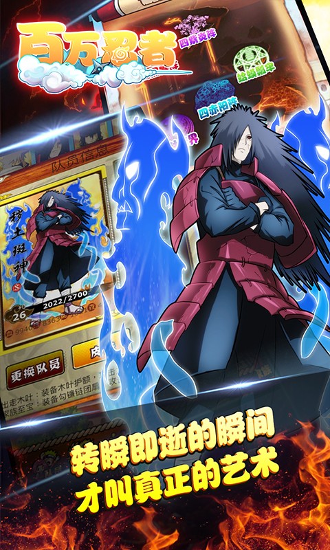 《百万忍者》是一款以火影忍者为题材的卡牌手游,汲取火影忍者精髓、颠覆传统卡牌游戏战斗体验!千张精美的火影忍者卡牌,百种原版忍术技能完美再现,数十个火影经典战役场影真实还原!