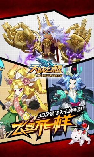 除了主城的颠覆创新外,游戏里面堪称最大亮点的就是游戏中的13位飞天神将了,玩家可通过“飞天神将”获得飞行变身,从而在空中就可以击杀一切海、陆、空三类敌人。是的,你没听错,作为一款卡牌游戏,《天域幻想》通过3D引擎技术可以让玩家脱离地面2D世界,进入到一个新的征程,你可以在空中浮空、漂移、或俯冲,也可以在空中释放技能与强大BOSS展开搏斗。怎么样,来一场真正的飞天较量吧!