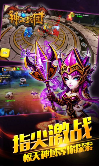 神之兵团是一款2015全新3D动作卡牌游戏,指尖微操作,打断技能,助你以少胜多,以弱胜强。爵位轻松升。BOSS挑战,神秘宝藏,虫洞探索,深渊巢穴,黑暗之塔,新玩法,新感觉。游戏中拥有共通想法的继承者们走到了一起,他们协作、互助,组成了一个个足以抗衡世界的组织神之兵团。